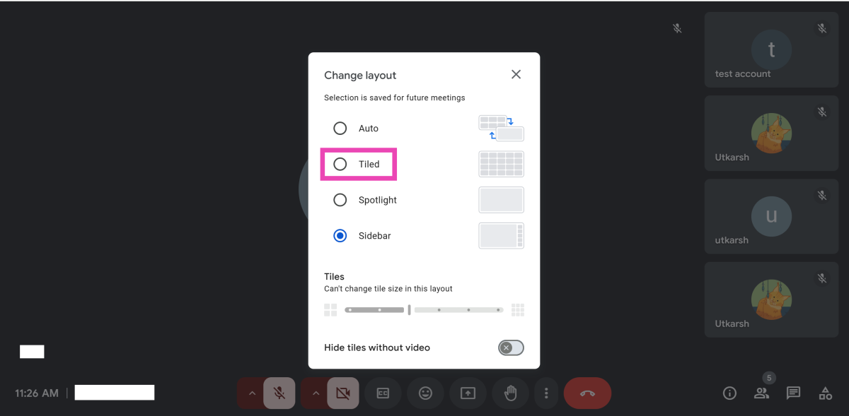 Ymmärrämme ensin Google Meet -sovelluksen käytettävissä olevat asetteluvaihtoehdot.