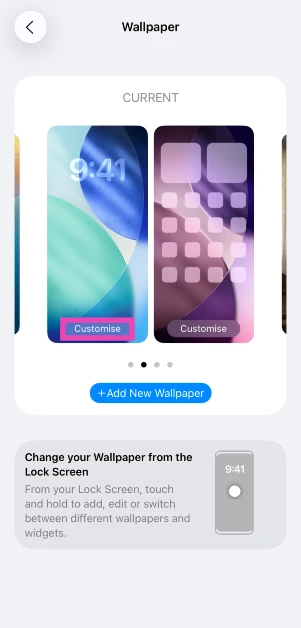 Vaihe 3:OsuaMukauttaaPainike lukitusnäyttöpaneelissa.