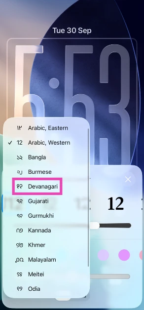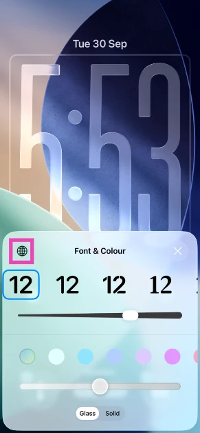 Mennä jhkAsetukset> Taustakuva, napauta lukko -näyttöpaneelissa 'Mukauta'. Napauttaakello -widgetJa paina ponnahdusvalikon maapallokuvaketta. Valitse skripti luettelosta ja paina 'valmis'.