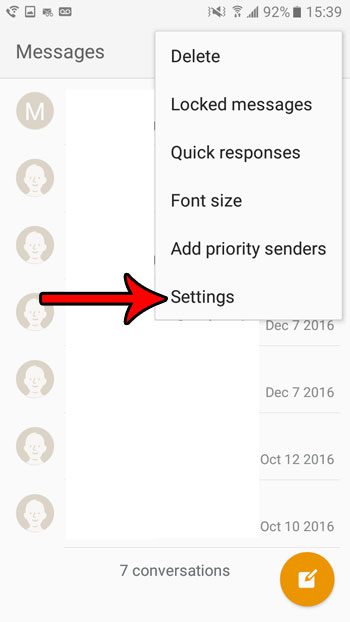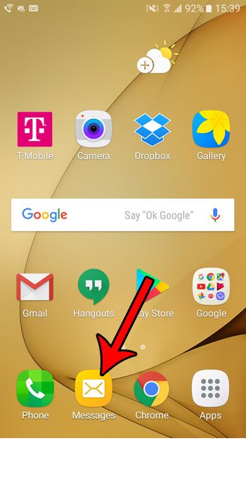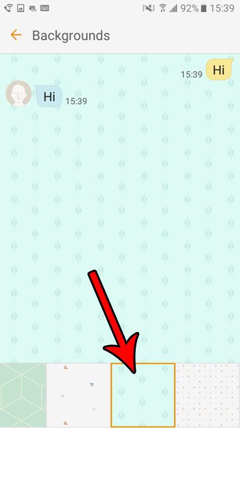 Tämän artikkelin vaiheet suoritettiin Samsung Galaxy On5 -puhelimella Android Marshmallow -käyttöjärjestelmällä. Kun olet suorittanut alla olevat vaiheet, sinulla on uusi tausta viestejen takana, joita näet laitteen viestisovelluksessa.