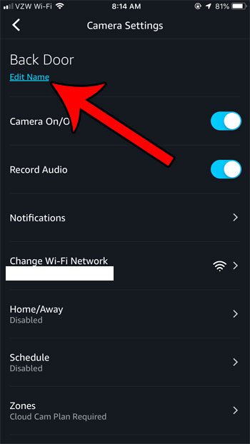 Opas jatkuu alla lisätietoja siitä, kuinka Amazon Cloud Cam -nimen nimen muuttaminen iPhonessa, mukaan lukien kuvat näistä vaiheista.
