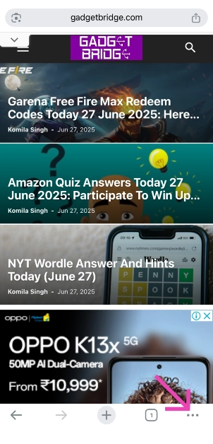 Vaihe 1:Käynnistää Google Chromeja napautaellipsitnäytön oikeassa alakulmassa.