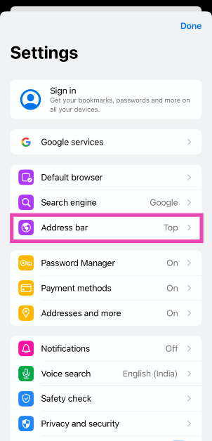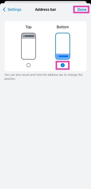 Muuta osoitepalkin sijainti Google Chromessa (iOS)