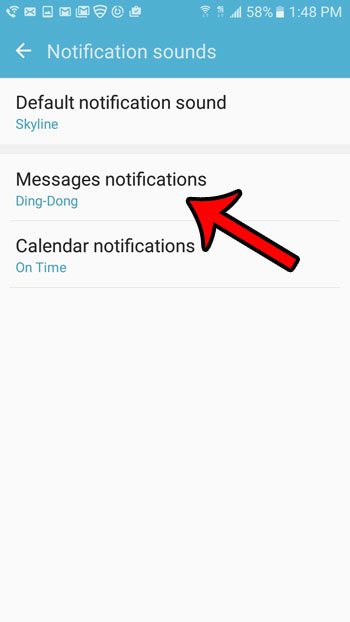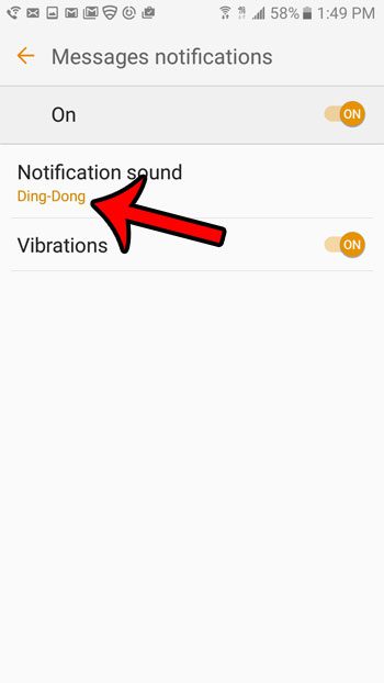 Vaihe 6: ValitseIlmoitusäänivaihtoehto. Huomaa, että voit päättää ottaa käyttöön tai poistaa käytöstäVärähtelyVaihtoehto, kun saat tekstiviestin tällä näytöllä.