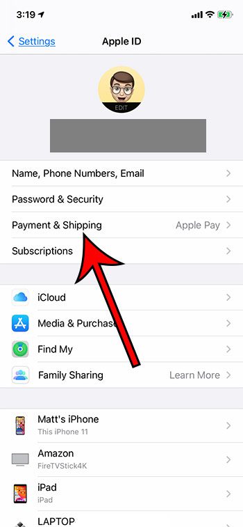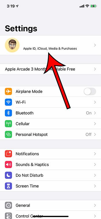 Vaihe 2: Kosketa valikon yläosassa olevaa Apple ID -korttia.