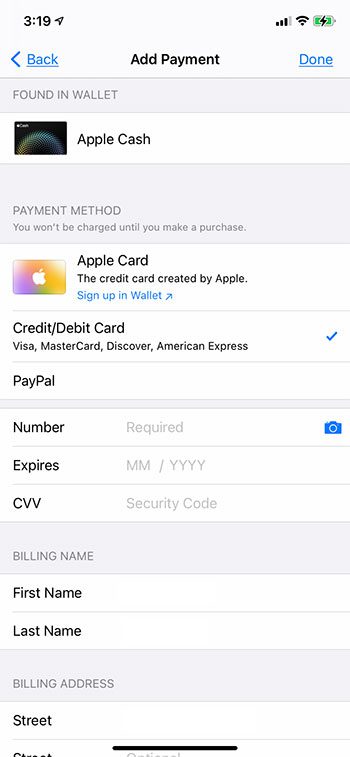 Vaihe 6: Kirjoita korttitietosi ja napauta sittenTehtyPainike näytön yläosassa.