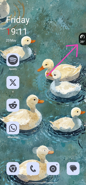 Vaihe 5:Siirry puhelimeesi toiseen sovellukseen tai sivuun. Nykyinensisälämpötilanäkyy näytön oikealla reunalla.