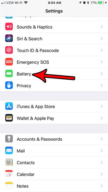 Vaihe 2: Vieritä alas ja valitseAkkuvaihtoehto.