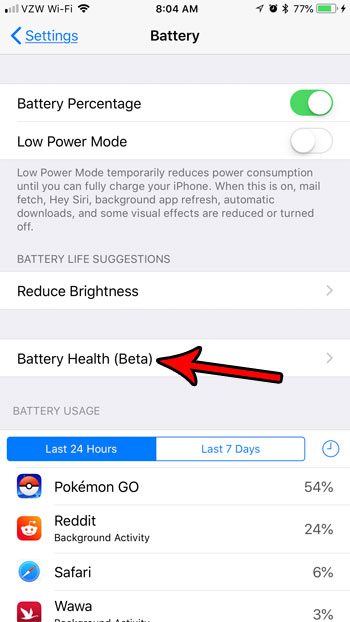 Opas jatkuu alla lisätietoja iPhone 7 -akun terveyden tarkastelusta, mukaan lukien kuvat näistä vaiheista.
