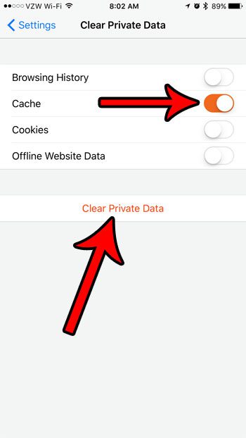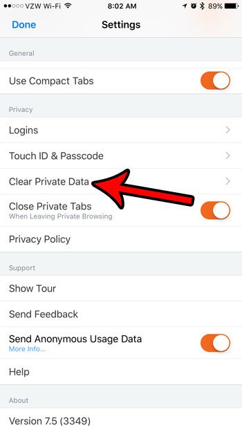 IPhonen Firefox -selain antaa sinun poistaa erityyppisiä tallennettuja tietoja, mukaan lukien välimuisti.