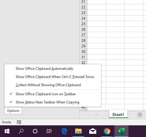 Huomaa, että siellä on myösVaihtoehdotPainike leikepöydän sarakkeen alareunassa, jossa voit mukauttaa tapaa, jolla leikepöytä käyttäytyy Excelissä.