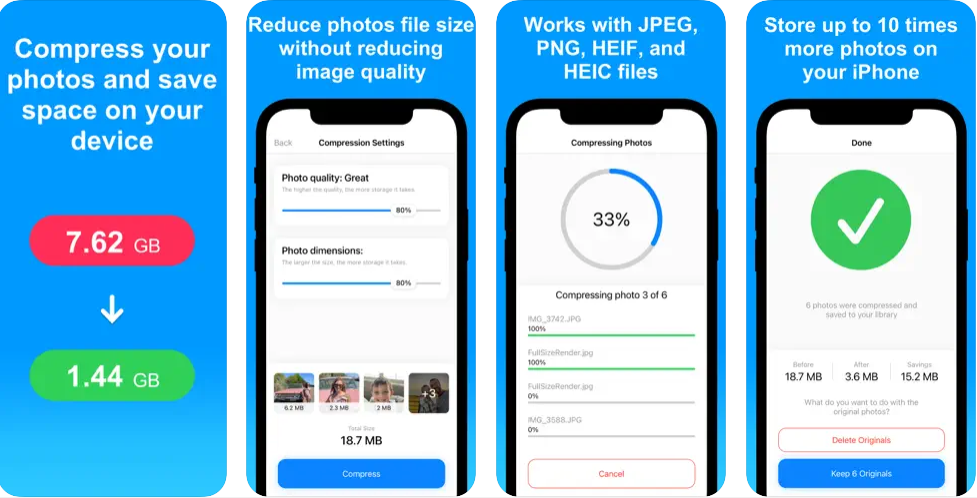 • Käytä App Storen valokuvakompressorisovellusta, kuten paina valokuvia ja kuvia.