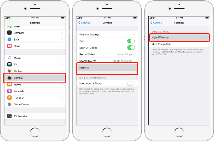 - Napauta ”Highcicacent” tallentaaksesi valokuvat HEIC -muodossa.