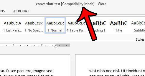 Tiedät, että asiakirja on avoinna yhteensopivuustilassa, kun näet nämä sanat asiakirjan otsikon vieressä. Esimerkki tästä on esitetty alla -