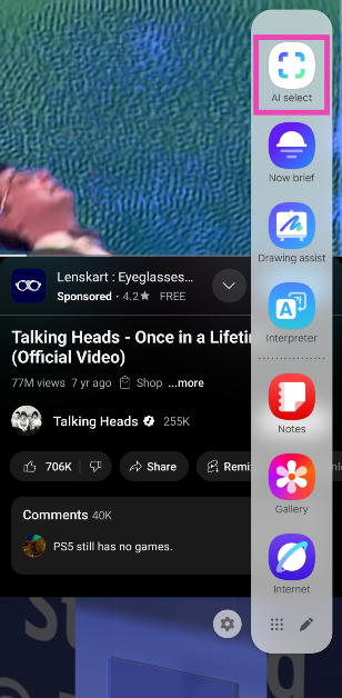 AI Select on yksi uusista Galaxy AI -ominaisuuksista Samsungin One UI 7 -käyttöjärjestelmässä. Tämä työkalu voidaan valita Samsung -puhelimen reunapaneelista. AI Select skannaa puhelimen näytön sisältöä ja antaa sinun olla vuorovaikutuksessa sen kanssa luovilla tavoilla. Tässä on mitä voit tehdä sen kanssa: