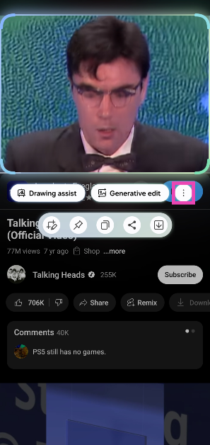 Toista video Samsung -puhelimellasi, vedä reunapaneeli ja napauta 'AI Select'. Napauta ellipsejä, valitse 'Luo gif', nauhoita video ja paina Stop, kun olet valmis. Napauta nuolikuvaketta tallentaaksesi GIF -puhelimen.