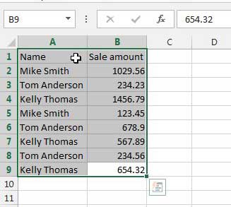 Vaihe 2: Korosta hiiresi kaikki tiedot, jotka haluat sisällyttää pivot -taulukkoon.