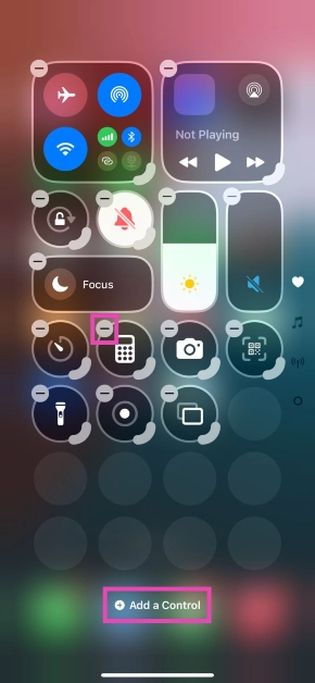 Pyyhkäise alas tilapalkin oikealta puolelta, napauta Plus -kuvaketta näytön vasemmassa yläkulmassa, napauta Lisää ohjaus ja valitse valitsemasi laatta.