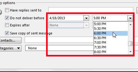 Vaihe 4: NapsautaPäivämääräavattava valikko vieressäÄlä toimita ennensiinäToimitusvaihtoehdotNapsauta sitten ikkunan osiota, jolloin haluat viestin lähettävän.