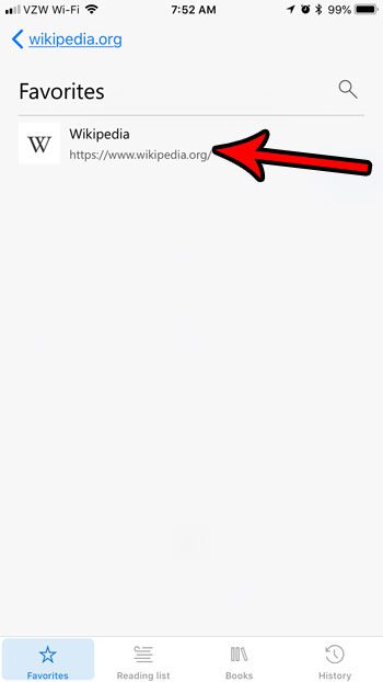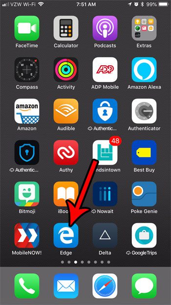 Tämän artikkelin vaiheet suoritettiin iPhone 7 Plus -sovelluksella iOS 11.4.1: ssä. Tämän oppaan vaiheissa oletetaan, että olet lisännyt ainakin yhden suosikki verkkosivusi iPhonen Edge -sovellukseen. Suorittamalla alla olevat vaiheet poistat suosikki sovelluksesta. Voit aina lisätä sen myöhemmin uudelleen, jos haluat tehdä niin.