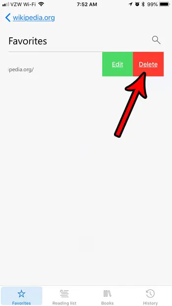 Vaihe 4: Pyyhkäise vasemmalle suosikkille, jonka haluat poistaa.