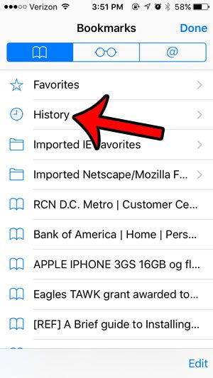 Vaihe 3: ValitseHistoriaVaihtoehto lähellä näytön yläosaa.