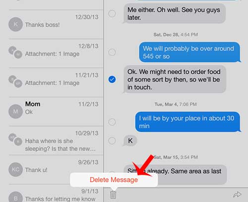 Yksittäisten tekstiviestien poistaminen iPad 2: lla iOS 7: ssä