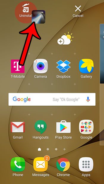 Voit sitten vetää sovelluksenAsennuksen poistaminenKuvake näytön yläosassa.