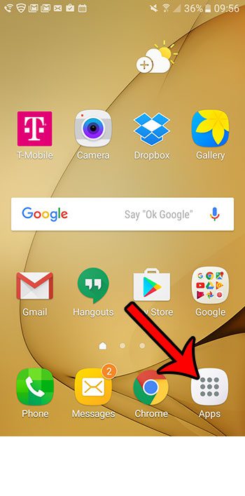 Alla olevat vaiheet suoritettiin Samsung Galaxy On5: llä, joka käytti käyttöjärjestelmän Android Marshmallow -versiota. Tämän artikkelin ensimmäinen osa näyttää, kuinka sovellus poistetaan puhelimen asetusvalikon kautta. Artikkelin toinen osa näyttää kuinka poistetaan sovellus aloitusnäytöstä.