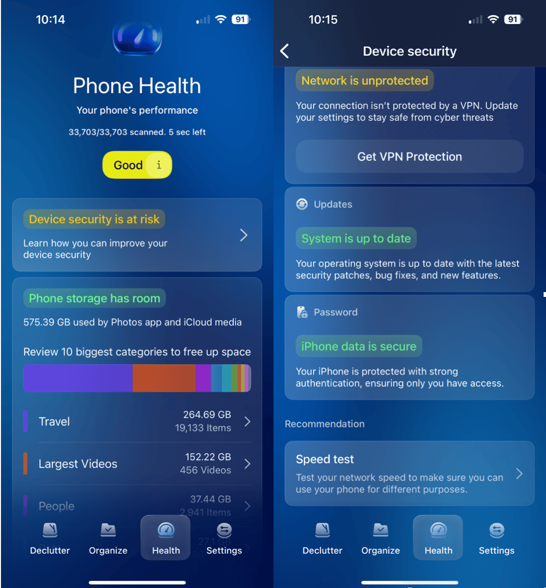 CleanMy® -puhelimen terveysmoduuli auttaa sinua: