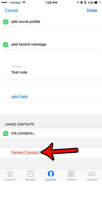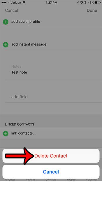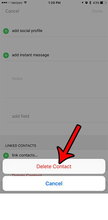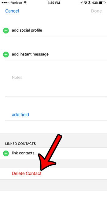 Vaihe 5: Vieritä näytön alaosaan ja napautaPoista yhteyshenkilöpainike.