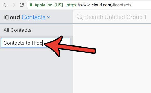 Huomaa, että kontaktiryhmien käyttäminen edellyttää, että laitat kaikki yhteystietosi ryhmiin, koska et voi käyttää mitään Watchall -ryhmiä (kaikki iCloud -yhteystiedot, kaikki Gmail -yhteystiedot jne.) Näyttämättä myös piilottamasi kosketuksia. Joten alla olevat vaiheet näyttävät sinulle, kuinka luoda yksi iCloud -yhteysryhmä, mutta sinun on laitettava kaikki yhteystietosi ryhmiin, jotta tämä olisi tehokasta.