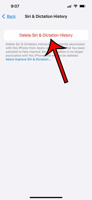 Vaihe 5: KosketaPoista Siri- ja saneluhistoriauudelleen näytön alareunaan vahvistaaksesi.