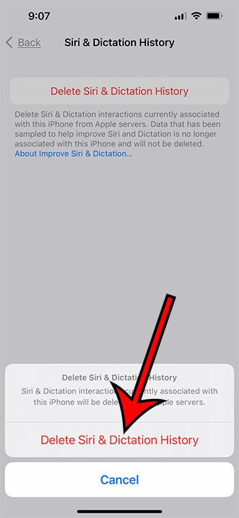 - Napauta PoistaSiri ja saneluhistoriauudelleen vahvistaaksesi.