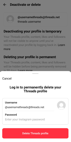 Profiilia ei voida tehdä säikeisiin, jos sinulla ei ole Instagram -tiliä. Jos et halua, että ketjut linkitetään Instagram -tiliisi, voit tehdä heittämisen Instagram -tilin tästä yksinoikeudesta. Lue tämä artikkeli oppiaksesi kuinka voit jatkaa sitä.