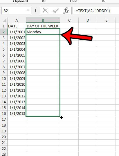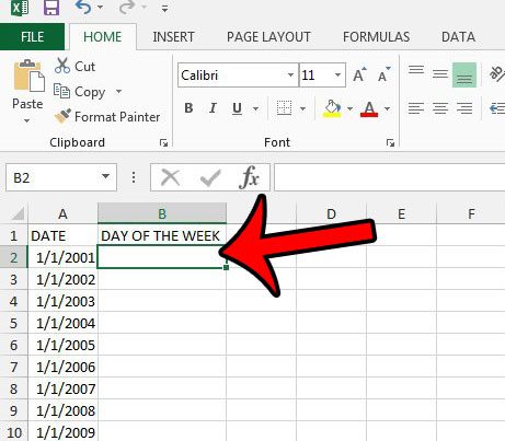 Nyt kun osaat määrittää viikonpäivämäärän Excel 2013 -päivästä, voit käyttää tätä kaavaa löytääksesi nämä tiedot mihin tahansa päivämäärään, jolloin joudut ehkä tuntemaan sen.