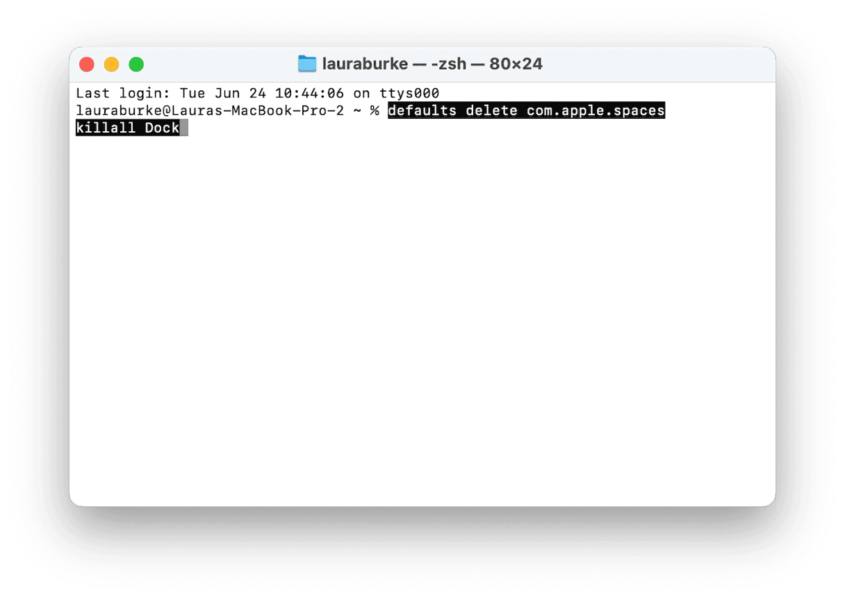 - Oletusarvot poistavat com.apple.spaces