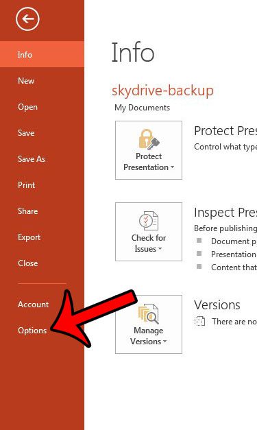 Vaihe 3: NapsautaVaihtoehdotPainike sarakkeen alareunassa ikkunan vasemmalla puolella.