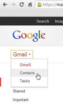 Vaihe 3: NapsautaGmailavattava valikko ikkunan vasemmassa yläkulmassa ja napsauta sittenKontaktitvaihtoehto.
