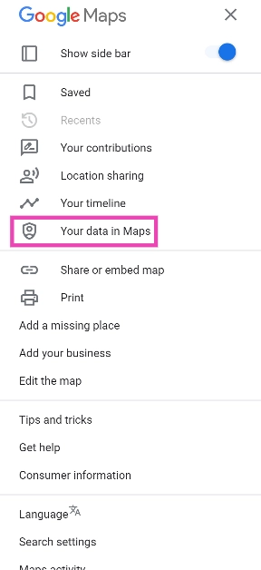 Vaihe 2:OsuaHampurilainen valikkonäytön vasemmassa yläkulmassa ja valitseTietosi karttoina.