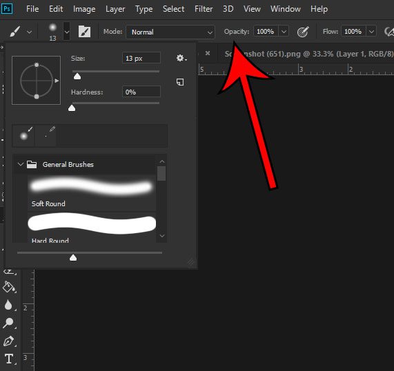 Kun kuva on auki Photoshopissa, voit painaa näppäimistön “B” -näppäintä tehdäksesi harjatyökalun tällä hetkellä aktiivisen työkalun.