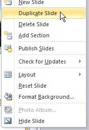 - Napsauta hiiren kakkospainikkeella valittua liukua ja valitseKaksoiskappale.