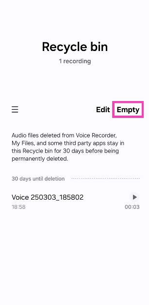 Tyhjennä kierrätysastia äänitallentimessa