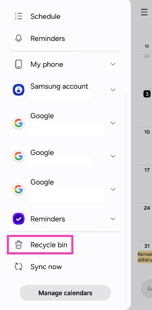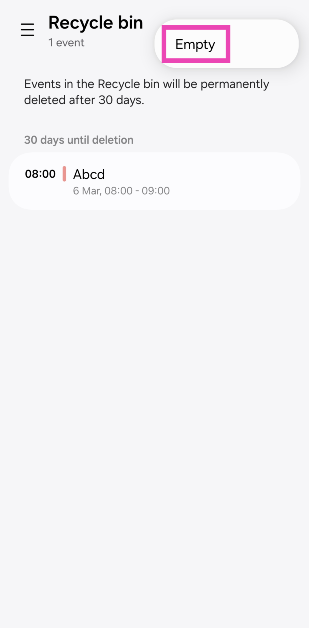 Tyhjennä kierrätysastia kalenterissa