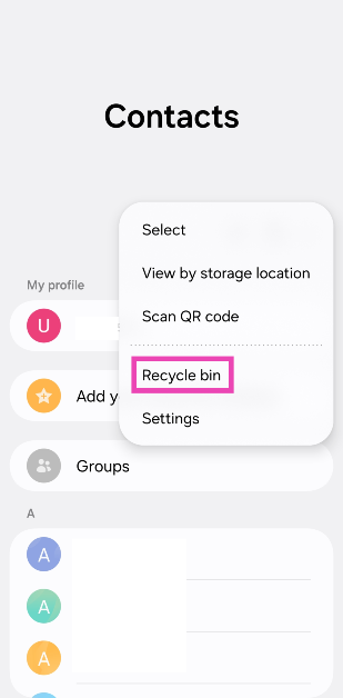 Jos haluat tarkastella poistettuja yhteystiedot Samsung -puhelimellasi, siirry yhteystietosovellukseen, napauta ellipsejä ja valitse 'Kierrä bin'.
