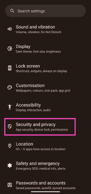 Vaihe 2:NapsauttaaTurvallisuus ja yksityisyys.