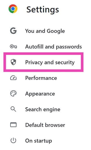 Vaihe 4:VaihtaaYksityisyys ja turvallisuusvälilehti.