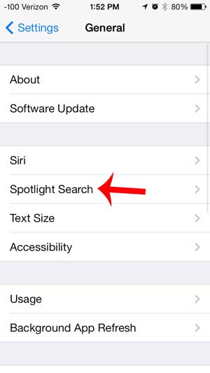 Spotlight -haku hakee vain tietyssä sovelluksessa, jos kyseinen sovellus on lueteltu erikseen Spotlight -hakuasetusten näytöllä, jota säädämme alla olevissa vaiheissa.