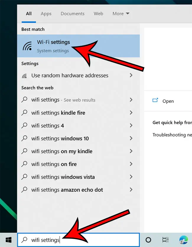 Vaihe 1: Napsauta suurennuslasi tai napsauta hakupalkkia, kirjoita sitten ”WiFi -asetukset” ja painaKirjoittaa.