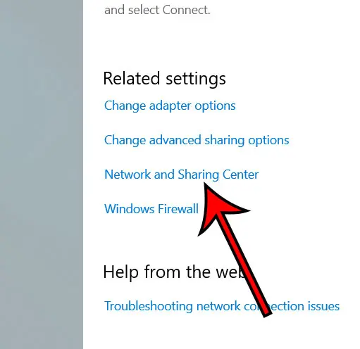 - Vieritä alas ja napsautaVerkko- ja jakamiskeskus.